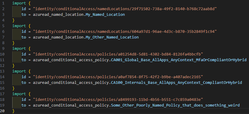 This guide demonstrates how to import existing Microsoft Entra ID Conditional Access Policies into Terraform using PowerShell, enabling Infrastructure as Code without any manual policy recreation.